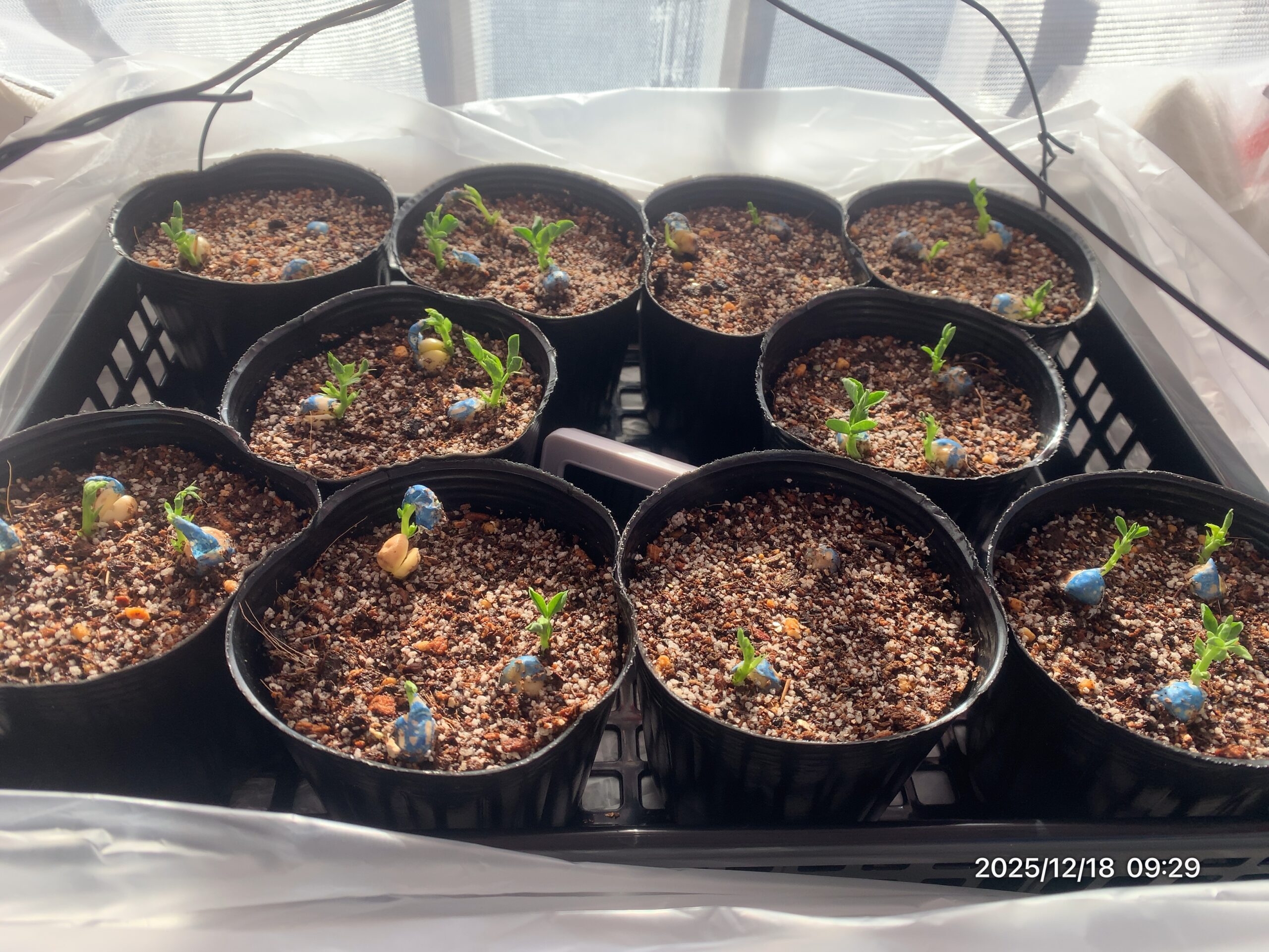 冬越しに必要、茎が太く締まった青々とした状態の苗に近づいた。