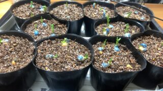 寒さや霜に当たらないよう温室に入れ、日中は換気をし日光によく当たるようにした。夜間0℃以下になる日は幼苗が寒さに耐えられないため屋内管理した。